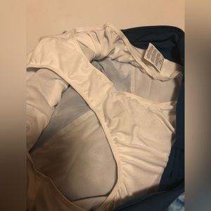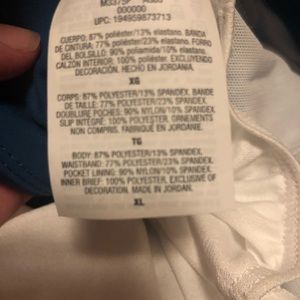 Zipper pocket on the back of the waist allows for storage while running or working out. Perforated detail and mesh inner layer on the sides allows for a lot of air circulation. Retail tags $35.