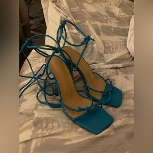 wrap around ankle/calf!! perfect condition just worn on the bottom a little (nobody will be able to see it tho)!! Seletto heel!