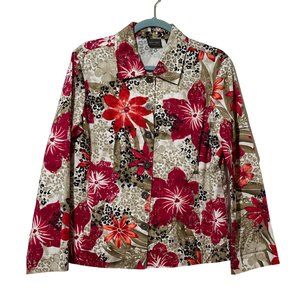 Additions by Chico’s women’s size 1 (M/8) red floral long sleeve shacket