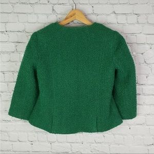 Boucle Green Double button Blazer. collarless around neckline. pockets. lined. Shoulder pads.