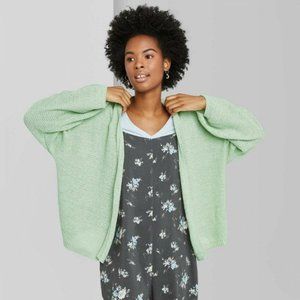 Long Sleeve Open Neck Lightweight Cardigan Sweater Minty Green