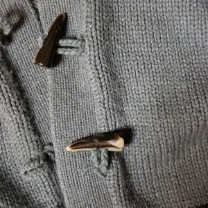 Cute winter sweater with a lined hood and fur detailing. Buttons on front are unique and fun!! Sleeves 10.5" from pit to wrist. 18" pit to pit, 20" shoulder to bottom edge.