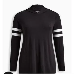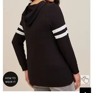 NWT black Torrid super soft slub hoodie. lightweight soft jersey, super comfy and flattering with jeans, joggers or leggings. Tunic length.