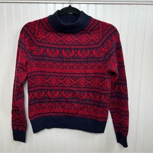 J. Crew AF009 Red & Blue Cheerful Fair Isle Mock Neck Sweater Women’s Size XS