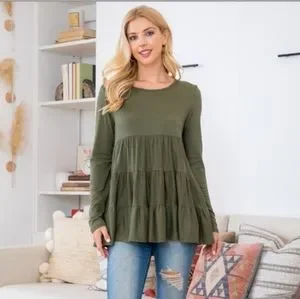 This top sure is a beauty and super soft. Solid long sleeve tiered top. Long sleeve, V-Neck.