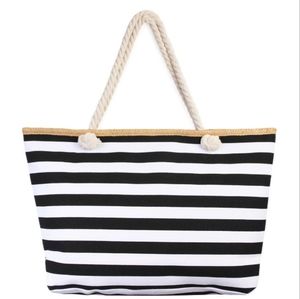 🏖NWT White & Black Striped Canvas Rope Jumbo Tote Bag🏖