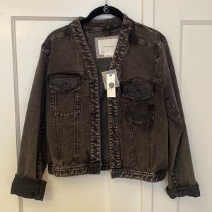 Anthropologie black denim jacket, soft material. Never been worn, tags still on.