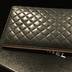 Authentic Chanel Lambskin long wallet in excellent preowned condition. Has minor sign of wear discoloration on inner top right corner.