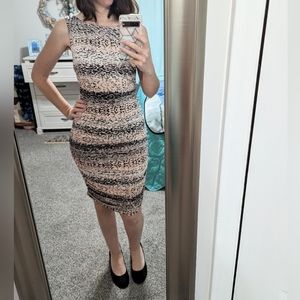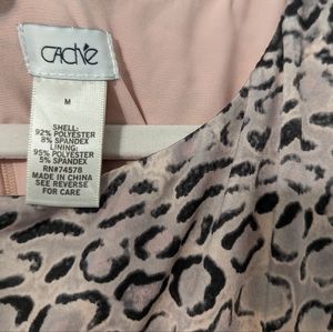 Gorgeous and very flattering dress from Cache. Features a very pretty light pink and black animal print pattern.