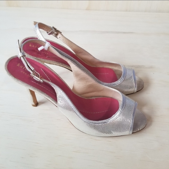 Made in Italy, Kate Spade New York size 8 B. Peep toes, slingback, leather upper, lining and soles. Light wear, in great used condition.