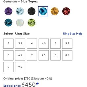 Blue Nile cushion cut size 6 blue topaz 14k white gold ring