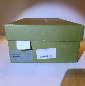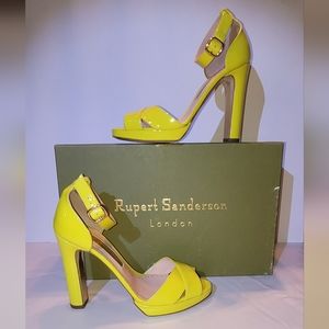 RUPERT SANDERSON Meadow Patent Heel in Citrus Color.
