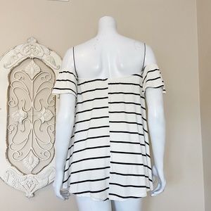 Lollipop Star | Wmns Cream & Navy Stripe Off Shoulder Short Sleeve Top | Size: S