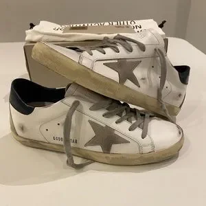 Golden Goose Superstar Sneaker in White Leather/Ice/Night Blue sz 40 New in Box