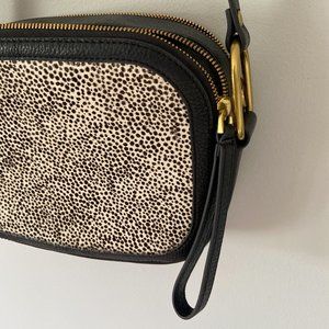 Fossil Black Elle Crossbody Bag Animal Print Cow Hide