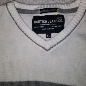 Nautica Jeans , Classic White And Grey , Size XL Mens Sweater , Excellent Condition