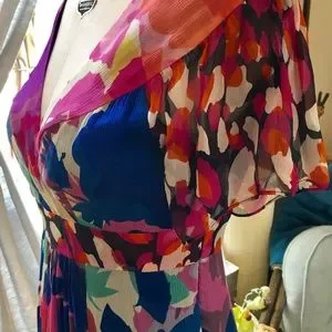 Diane Von Furstenberg Floral Vibrant Pink & Blue Printed Silk Chiffon Dress