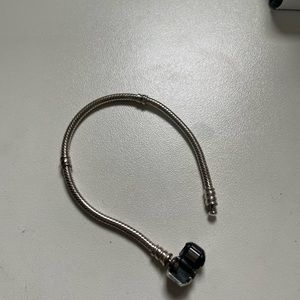 My daughter can no longer fit this Pandora bracelet. It’s silver and still closes in the snap. Needs a little cleaning but in decent condition. Measures about 6.5” so definitely for a smaller wrist. No box and no receipts.