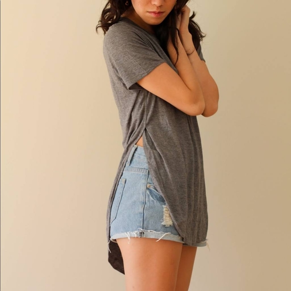 Wilfred high-low side split t-shirt in dark grey, from Aritzia.