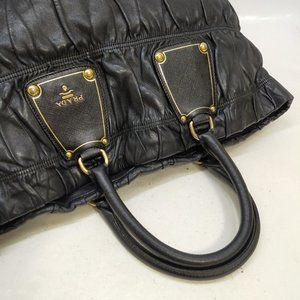 This is a larger Prada black leather bag. It is in great used condition with normal wear from use. The corners are rubbed, please see pictures and ask any questions you have.