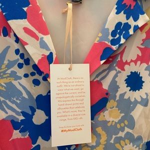 Adorable knee length shirt dress with belt from Modcloth! Comes from a no smoking no pet home. Dress has no shimmer but belt is silver. Never worn.