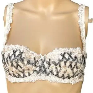 Excellent like new condition! Gorgeous pink and black lacy cross cross pattern with floral accents bra. Stunning detail! Retired style #03805. Sweet little bow decoration in the middle. Adjustable straps. Please see all photos for further detail. Great for a gift for holidays like Valentineโs Day, anniversaries, weddings, birthdays, date night, etc.๐ Spice up your underwear with this gorgeous bra!