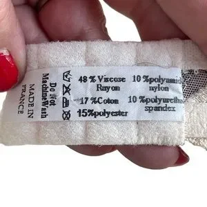 Materials: 48% viscose rayon 17% cotton 15% polyester 10% nylon 10% spandex