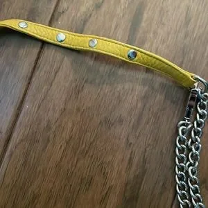 This petite yet spacious on-the-go bag has a front exterior zip pocket that’s secured with signature dog-clip hardware, a detachable chain-and-leather cross-body strap, and a zip-top closure with fringe pulls.