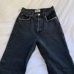 These Agolde Pinch Waist jeans come in the colour black tea and are size 23. They are vintage-inspired, high-rise jeans with a close-fitting waist and an easy, full-length straight leg.