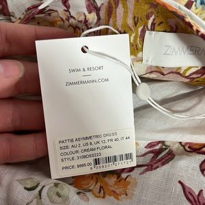 NWT Pattie Asymmetric Cut Out Linen Midi Dress in Cream Floral Size 8 is brand new with tags! The Pattie asymmetric dress is from Zimmermann's summer swim 2022 collection. A lightweight linen midi dress featuring waist cut outs, ruching throughout and an open self-tie back and a gorgeously unique silhouette. This is a Zimmermann's size 2 which according to their website is equivalent to a US size 8, please use measurements below for the most accurate fit: