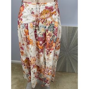 NWT Pattie Asymmetric Cut Out Linen Midi Dress in Cream Floral Size 8