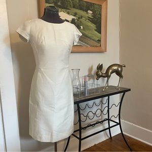 Vintage 1960s Solid Cream Wiggle Dress Office Neutral Midi Wide Neck Princess