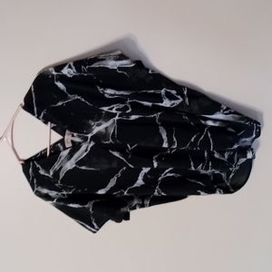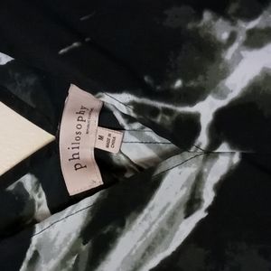 This stylish Philosophy top (size medium) features a marble or tie dye like design in black & gray. Very flowy & forgiving & comfy. Excellent like new condition & from a smoke & pet free home. Fingers crossed this will look just great on you!