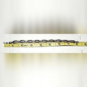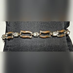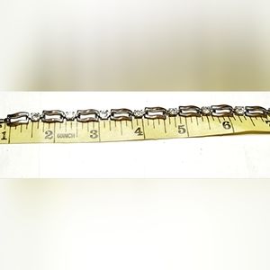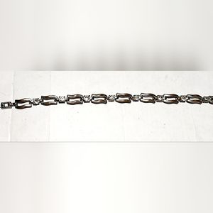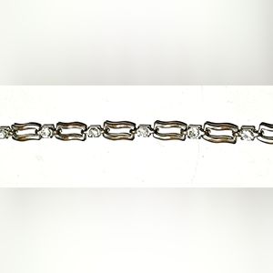 Vintage S link 8in silver bracelet with clear stones throughout, some tarnish