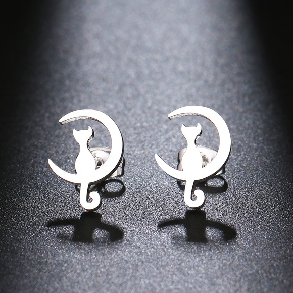 NWT Artisan Moon Cat ๐ Stud Earrings