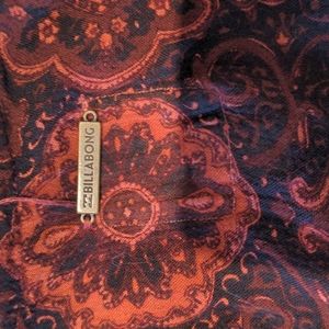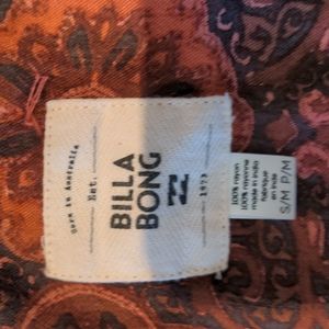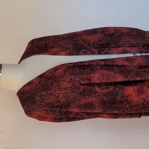 Billabong kimono, shawl, swimsuit cover-up. Paisley style print, blood red, black. Soft, lightweight, 100% rayon. Size small but would also fit a medium.