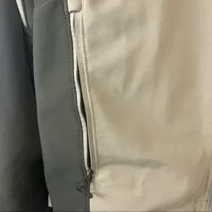 Front chest pocket and to hand pockets all with zipper closure