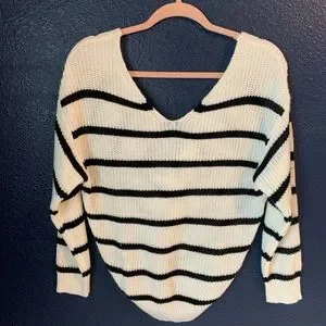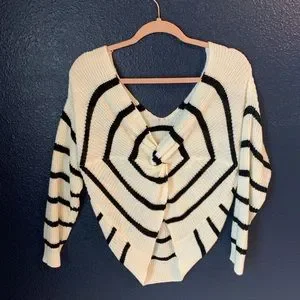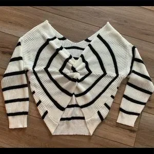 Very cute black and white striped sweater with twisted open back. EUC, only worn twice, no flaws.