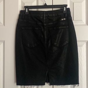 Wet look black denim 5 pocket skirt. 55% cotton 29% polyester 14% rayon 2% spandex. Worn once. Excellent condition