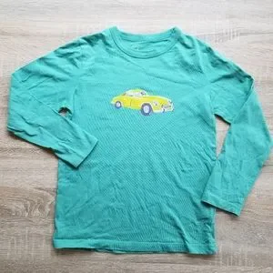 This listing is for a 2012 Mini Boden boy long-sleeve car tee in a size 7 to 8 years. The seagreen background is stunning. This tee is in very good used to excellent condition with very minimal wash wear / fade. I believe this was worn by my middle son 2-3x.