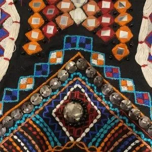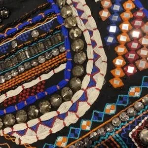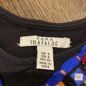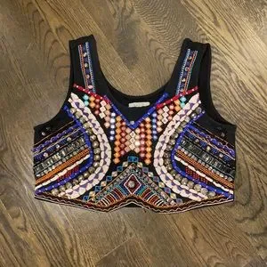 Zara beaded bohemian style crop top. The embellishments on this are amazing and give it a weighty feel when worn. Perfect for a festival! I’ve worn it over a black long sleeve top with a black pencil skirt and it looks fantastic. Always get lots of compliments when I wear it! No visible stains or tears. Ships from