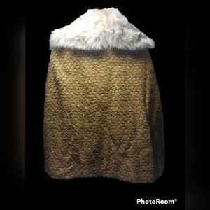 Gently used and does have the wool smell to it. 2 hooks in front for closure. No rips ,No stains, No discoloration.