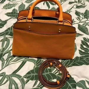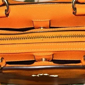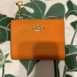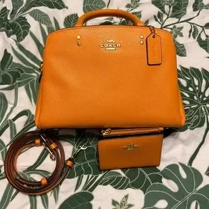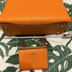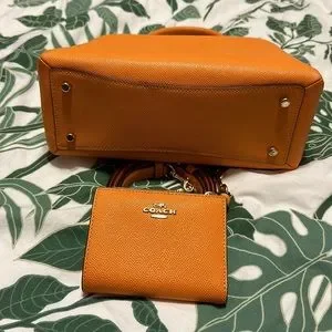 Used Orange Coach Mini Bag w/ Strap and Matching Wallet