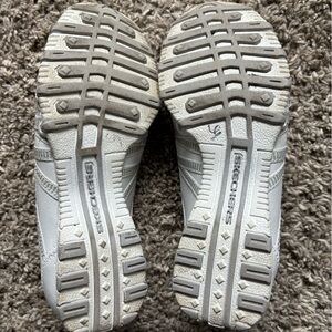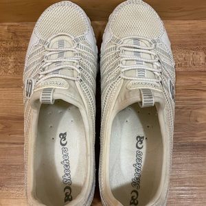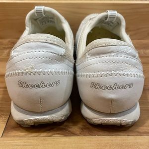 Skechers White Leather Shimmer Sneaker Slip on Shoes SN 21159 Womens Size 6. In great gently used condition!