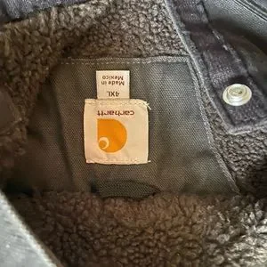 Carhartt black men’s jacket, super thick warm Sherpa lining, hooded. In very good condition, only worn a few times. Size 4XL