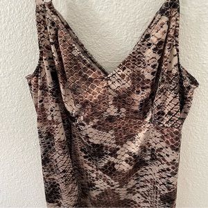 A slinky snake print slip dress with flirty straps will help you stay the right amount of wild while you take the town by storm.
