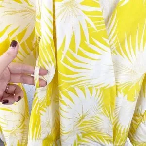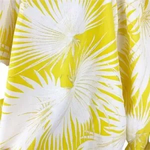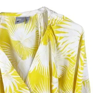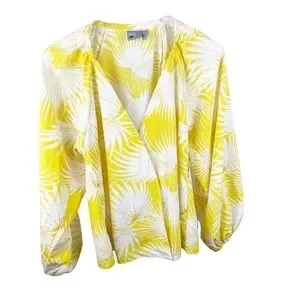 ASOS Yellow Palm Print Plunge Kimono Top V Neck Wrap Puffy Sleeve Blouse Size 2