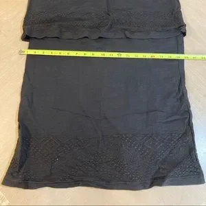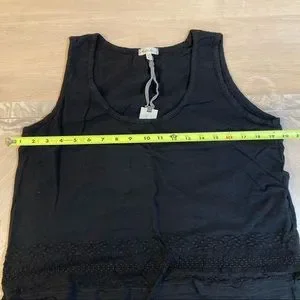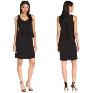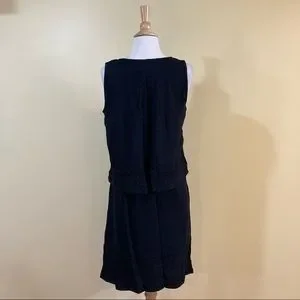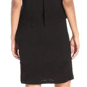 Sleek and sexy, this little black dress has a trendy layered style with a split back and a pretty, feminine embroidered lace trim. Sleeveless tank top style. The perfect day to night piece. Classy enough for the office and flirty enough for date night.
