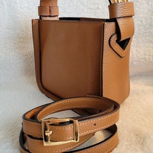 Brand new, Italian made 2way brown pebble bag Borse in Pelle. This stylist and fashionable cute bag can wear hand or crossbody. Goldtone hardware, magnetic top closure with one inner slide pocket.