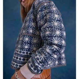 NWT Free People Kara Quilted Cardi / Pacific Combo